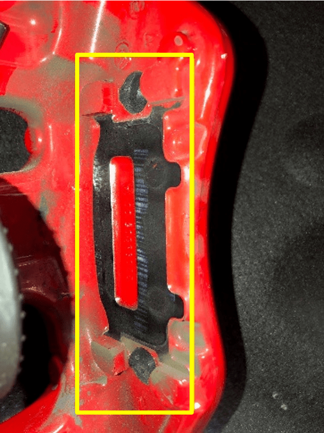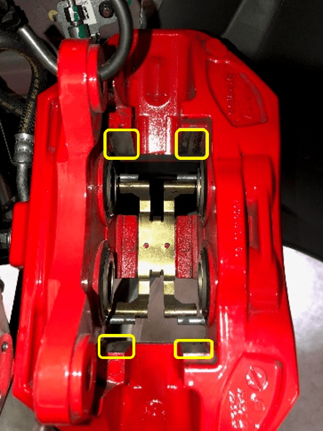 the piston faces, the inner surfaces of the front LH caliper, the retaining