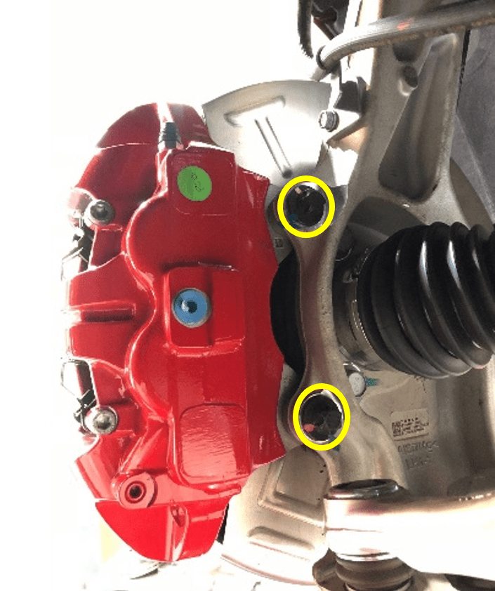 onto the front LH knuckle, install new bolts (x2) to attach the caliper to
