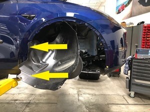 - Remove the clips (x8) that attach the front portion of the RH front wheel arch liners to the vehicle, and then move the wheel arch liner aside to perform the following steps.