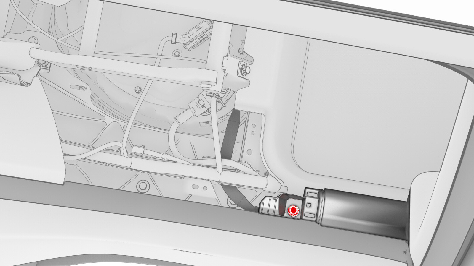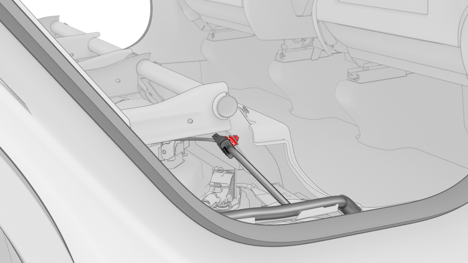 - Install the connector harness clip to the RH 2nd row seat frame.