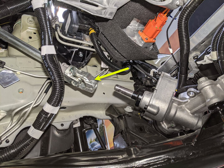 - Positioin the shock tower brace assembly aside to gain clearance for removal of the battery bracket.