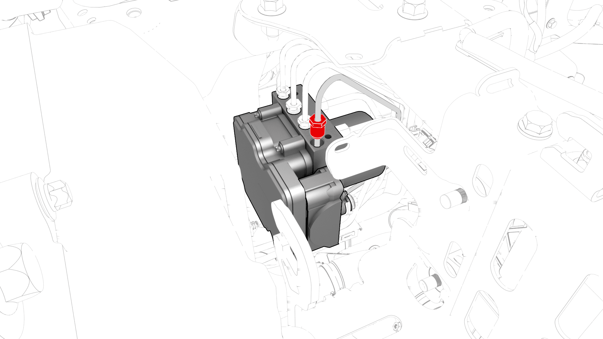 Remove the LH rear brake line pipe nut from the ABS modulator.