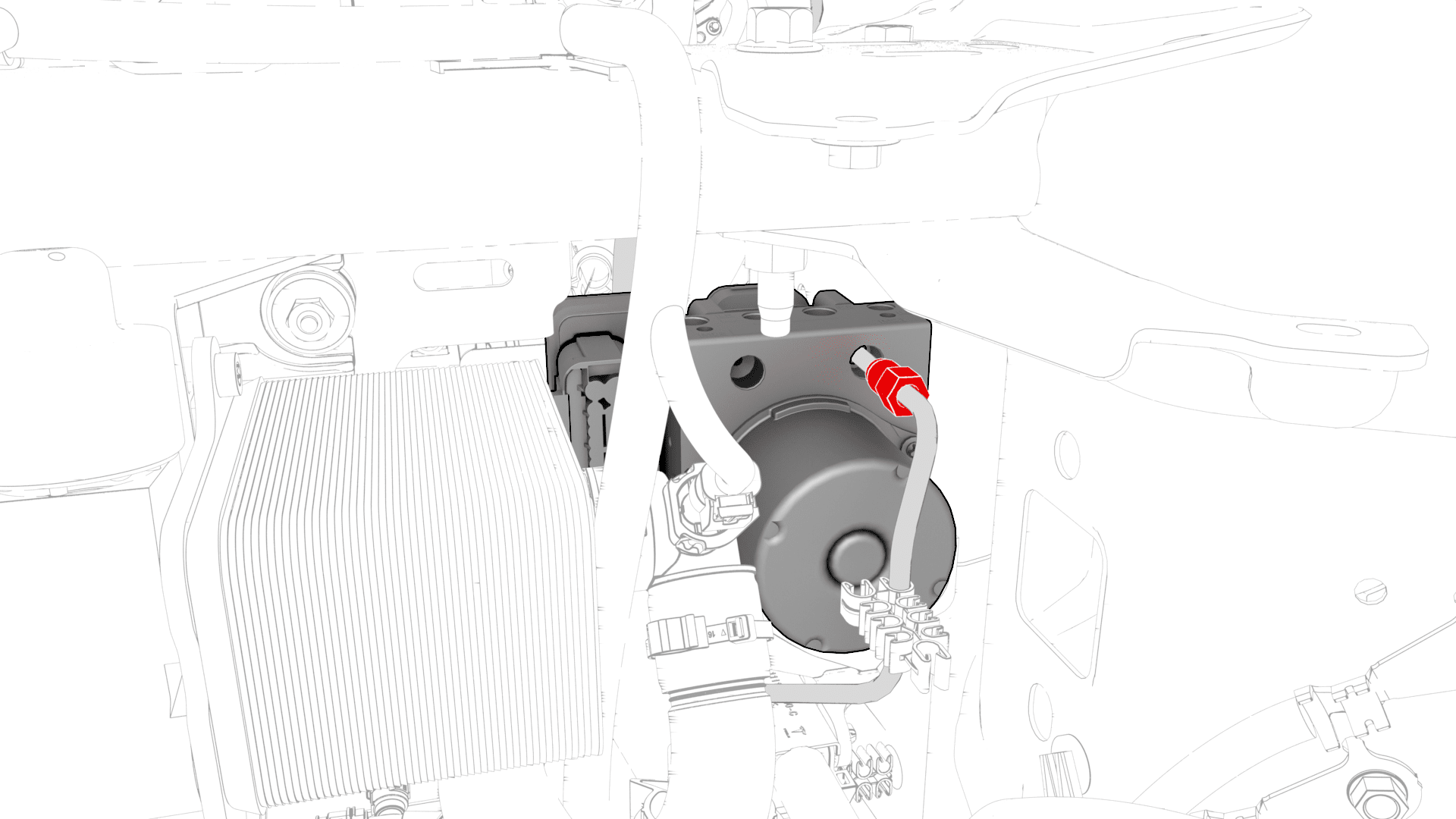 Remove the RH rear brake line pipe nut from the ABS modulator.