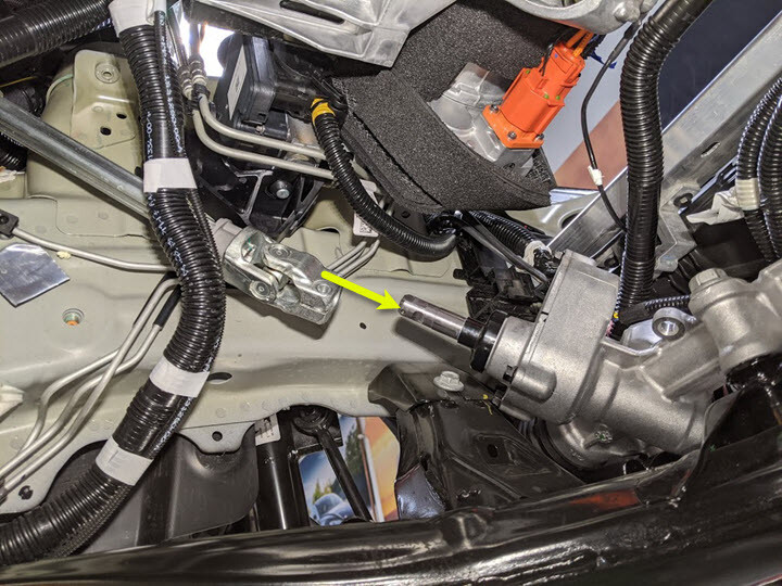 - Slide the electric steering column downward to install it into the steering gear assembly.
