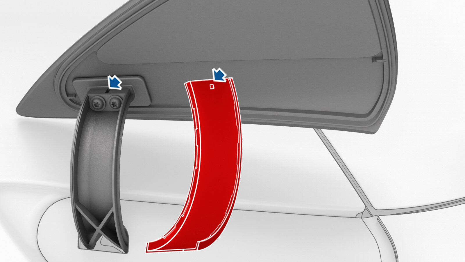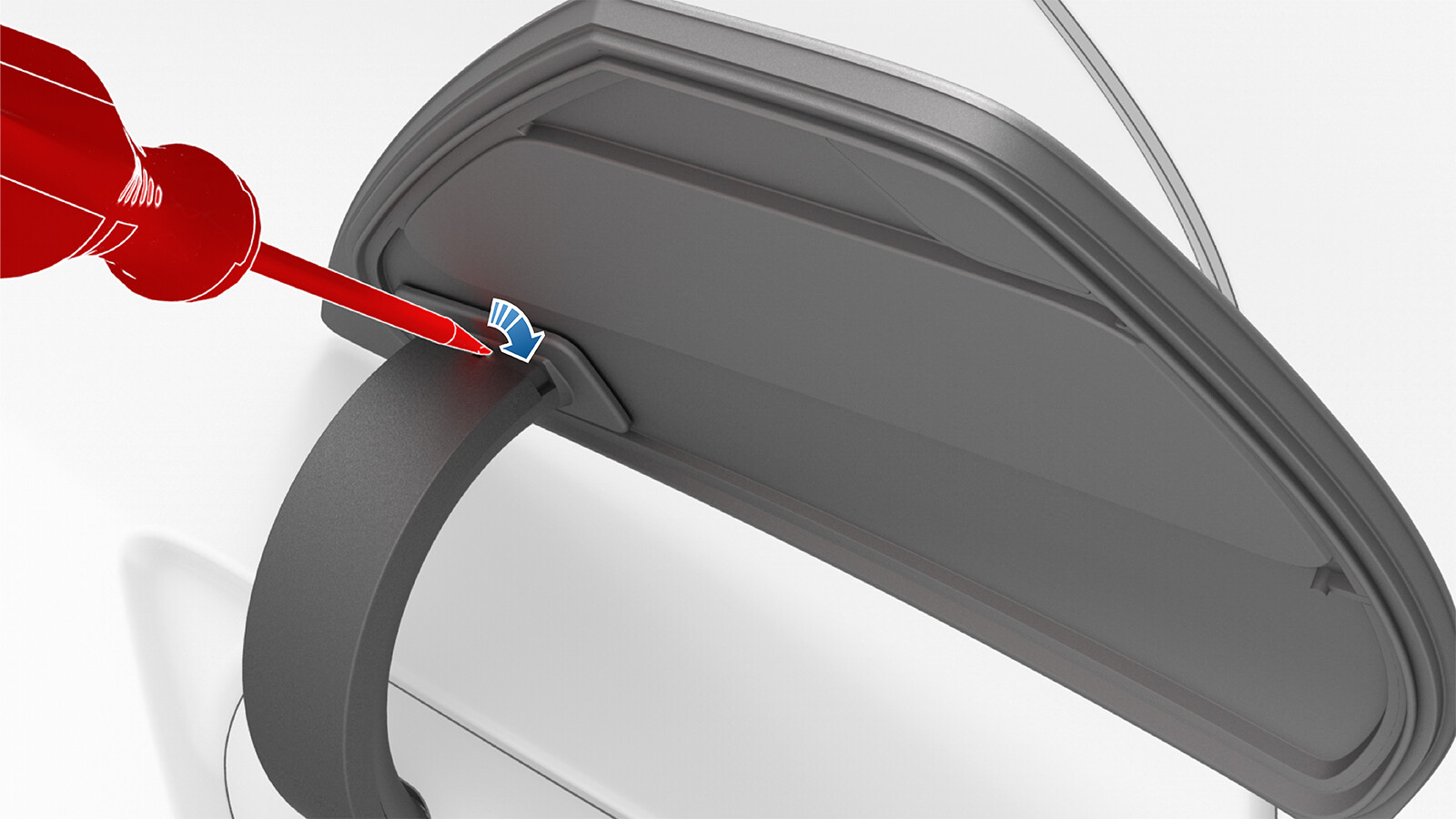 NoteThe hinge cover will be destroyed during the removal of the charge port door. A new hinge cover will be supplied with the new charge port door.