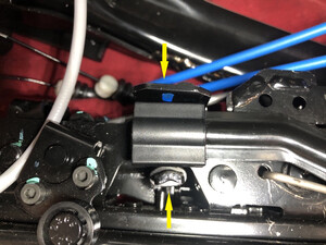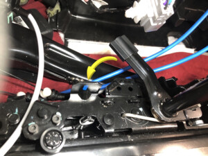 - Release the RH 2nd row seat easy entry actuator cable from the LH easy entry latch.