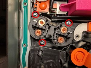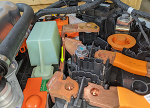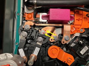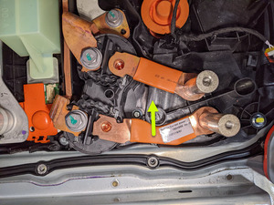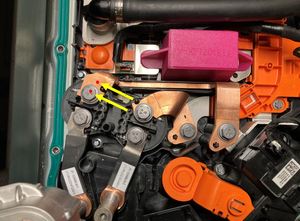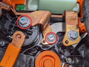 | Bolts (x3) that attach the HV battery fast charge contactor to the ancillary bay |