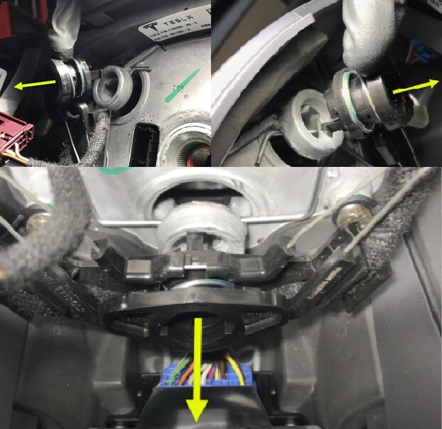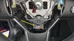 6. Connect the lower electrical connector on the steering wheel controller.