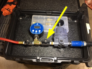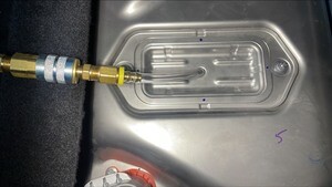 - Install the enclosure leak test adapter to ancillary bay probe lid cover and connect it to regulator test tool