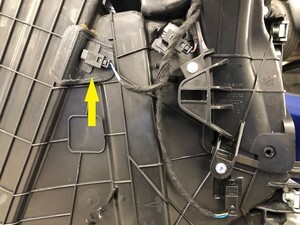 - Position the HVAC harness onto the HVAC assembly, and connect the LH evaporator thermistor connector.