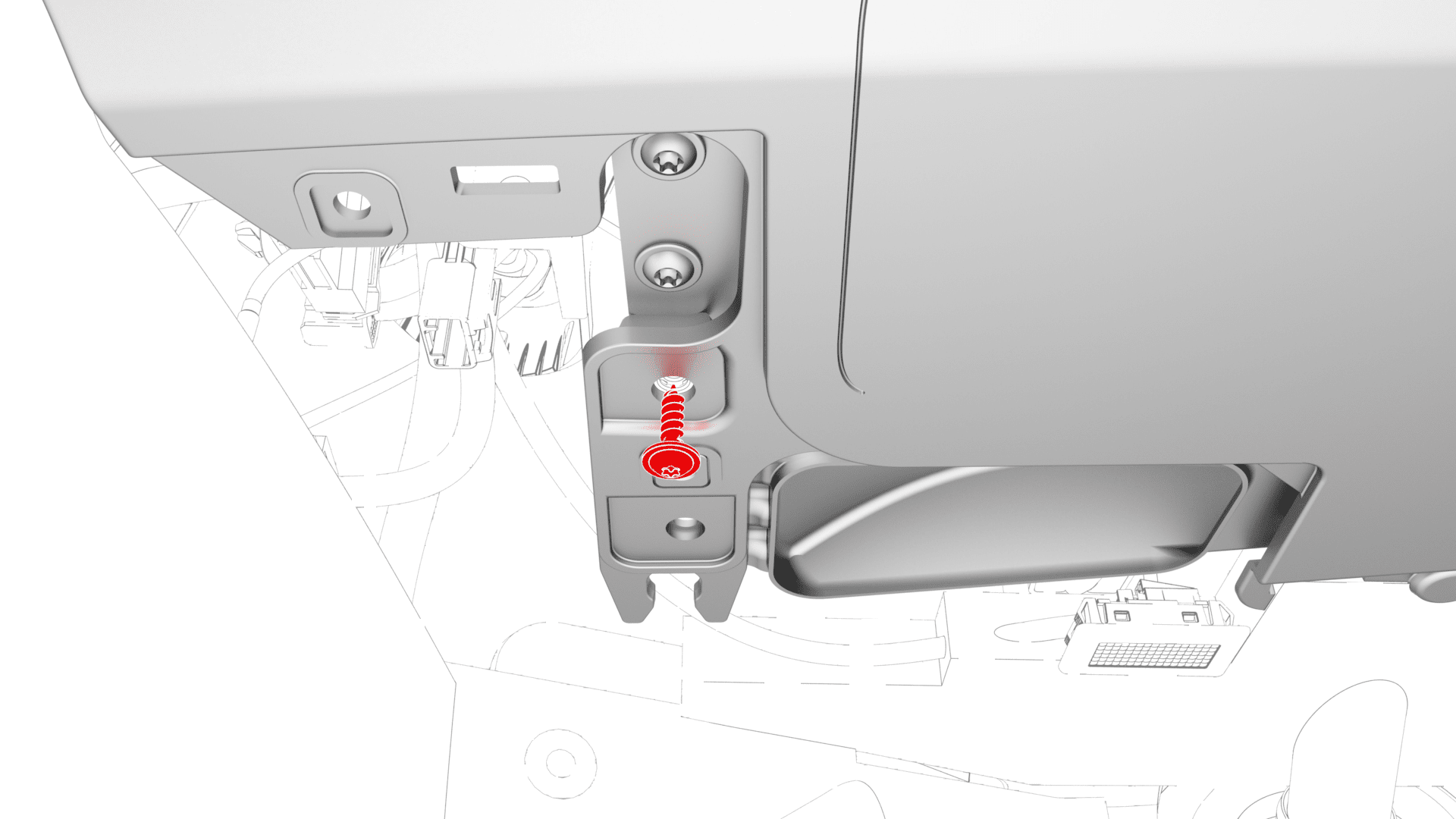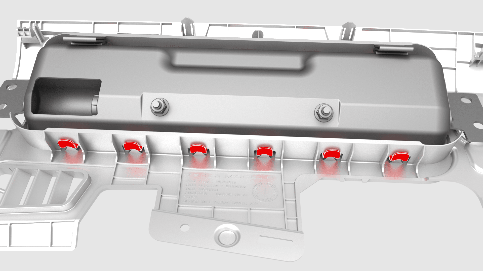 | Bolts (x4) that attach the front passenger knee airbag to the instrument panel |