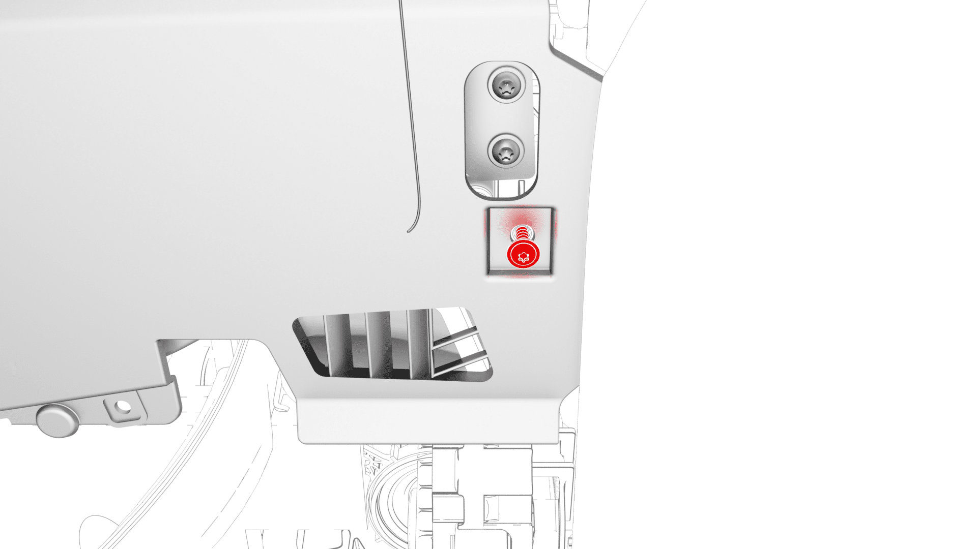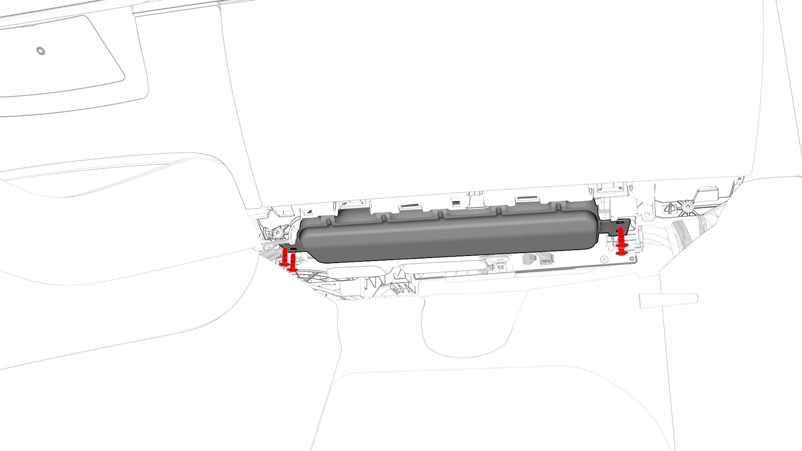 | Bolts (x2) that attach the front passenger knee airbag to the instrument panel |