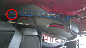 - Push the rear subframe portion of the LH body harness into the trunk which is near the rear section of the LH rear wheel liner area, and then push the harness through the LH side trunk bulkhead.