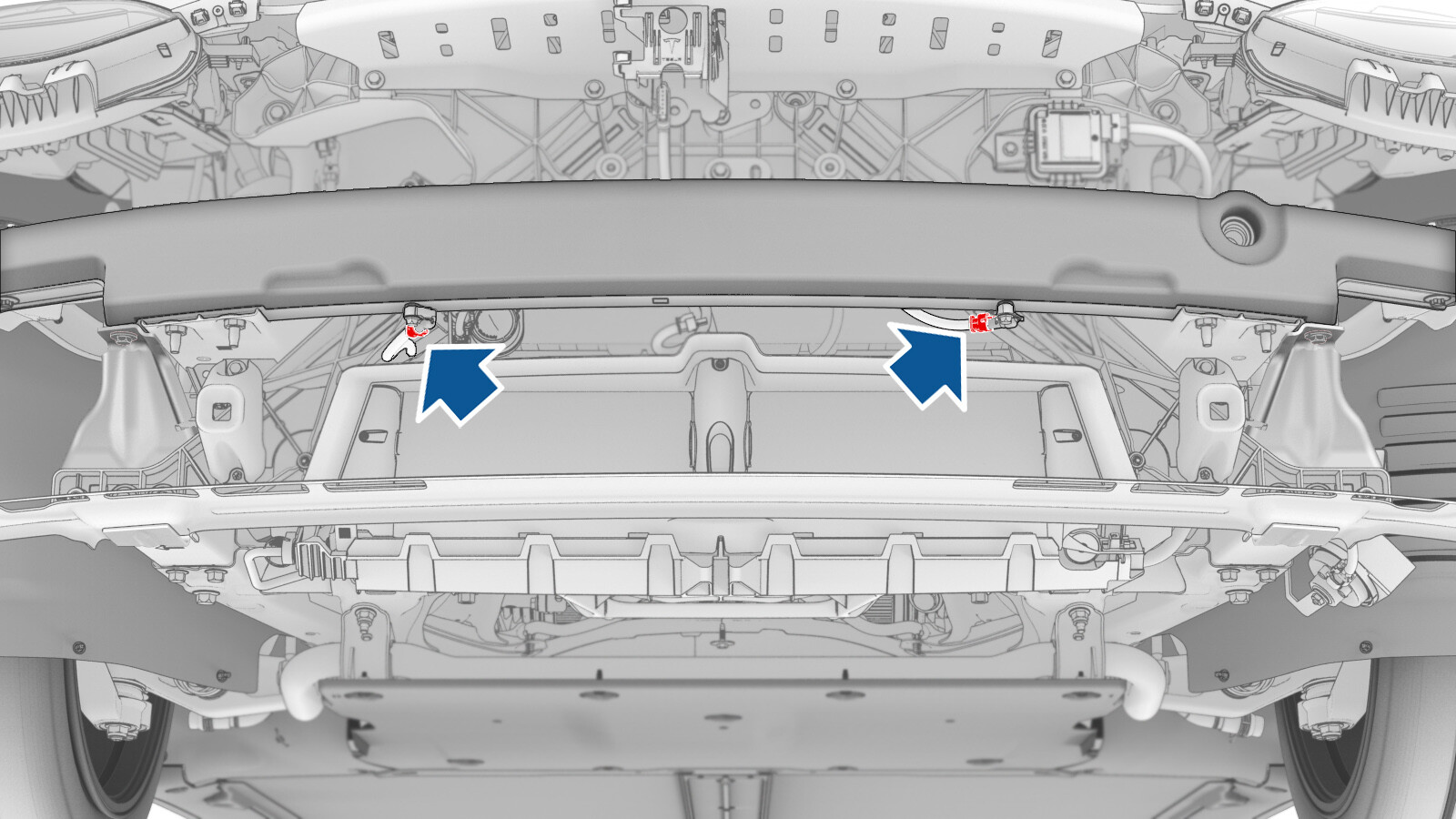 - Connect the electrical connectors to the LH and RH front bumper crash accelerometer sensors.