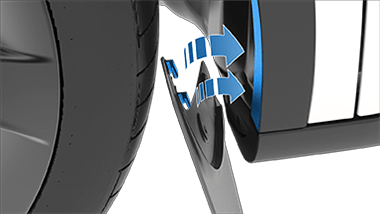- Maneuver the mud flap in place so that the tabs on the mud flap hook onto the backside of the front fender garnish. Make sure that the mud flap is aligned correctly with the holes in the front wheel arch liner and body of the vehicle.