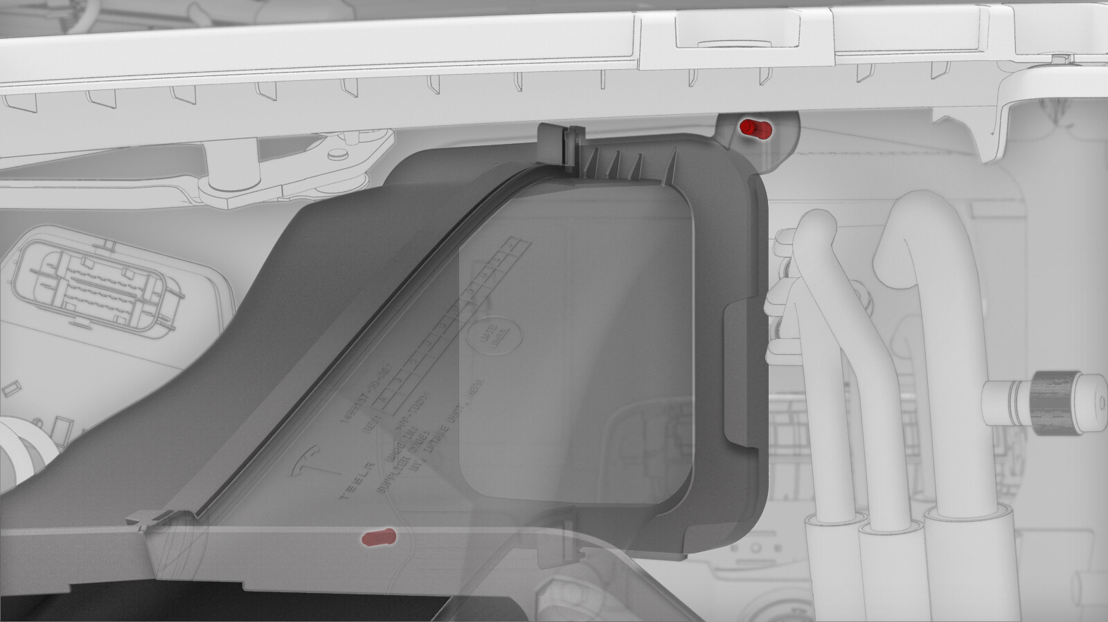 - Release the fresh intake duct from the studs (x2) on the bulkhead, and then remove the duct from the vehicle.