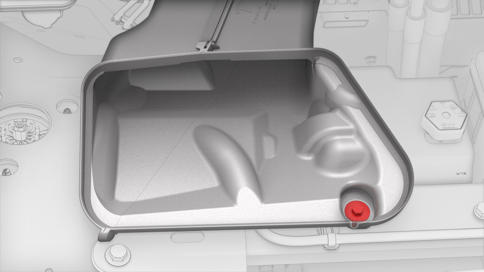 - Remove the 12V battery. See 12V/LV Battery (Remove and Replace).