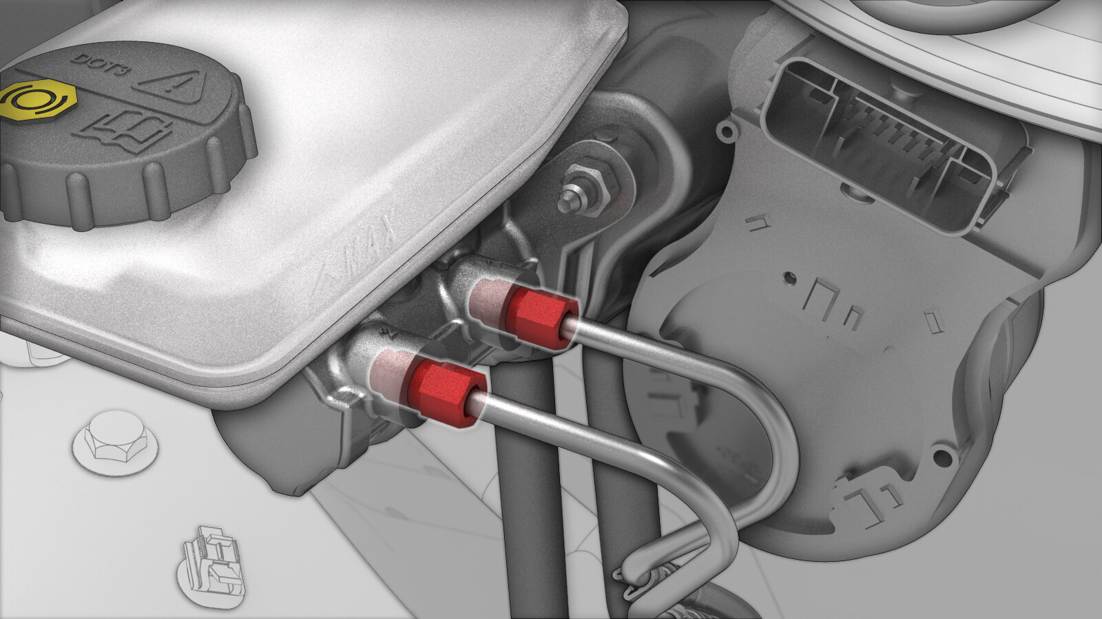 disconnect the harness connectors (x2) from the brake booster assembly.