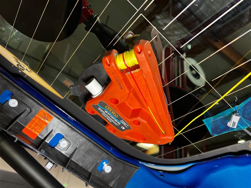 NoteMake sure to pull enough line through to wrap around the perimeter of the glass. Both ends of the wire can remain inside the vehicle interior and does need to be pulled through completely.
