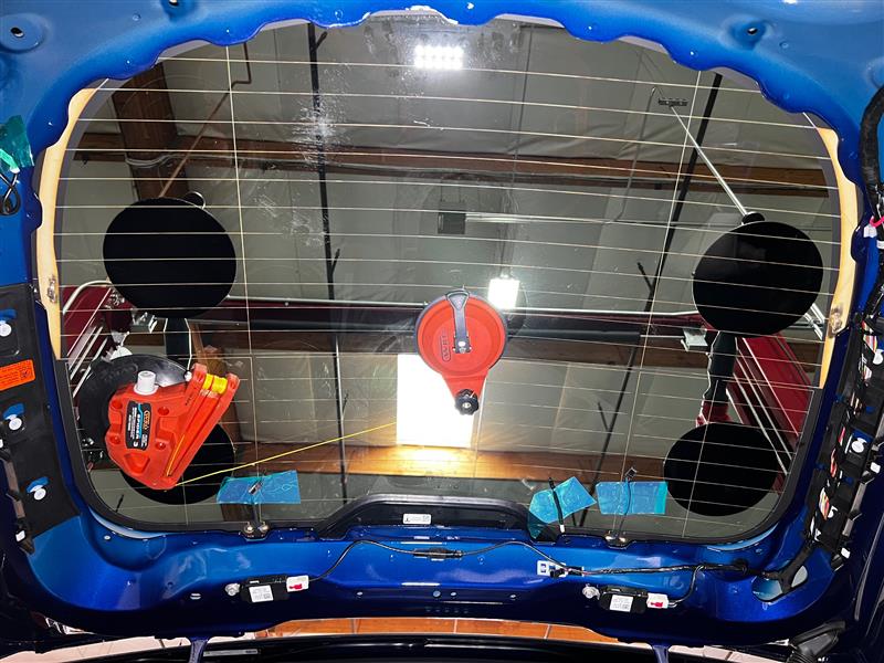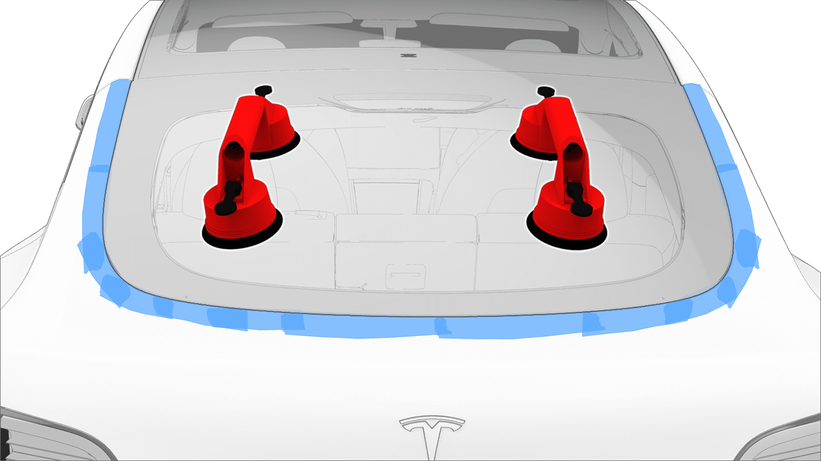 - Remove the double suction cups from the backlight glass and open the liftgate.