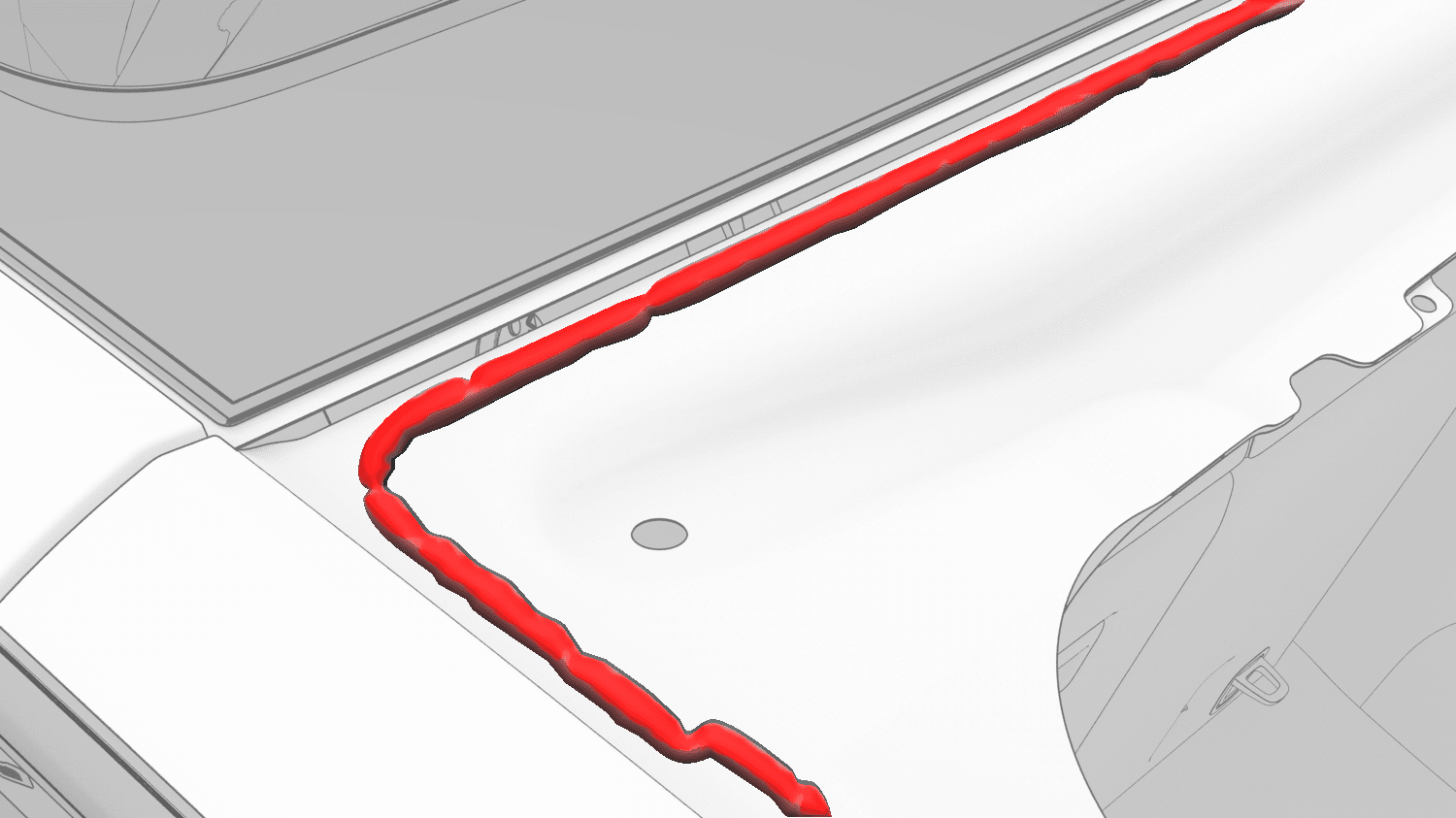 Carefully use a razor blade to remove all remaining urethane from the liftgate body. Make sure any residual urethane is 1 mm or less in thickness.