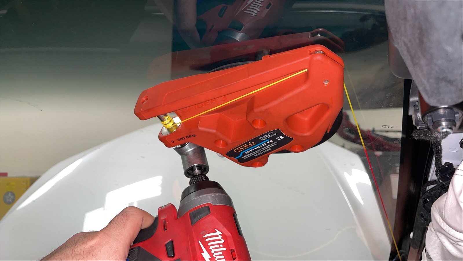 Secure the Spider cutting tool to the interior side of the windshield.