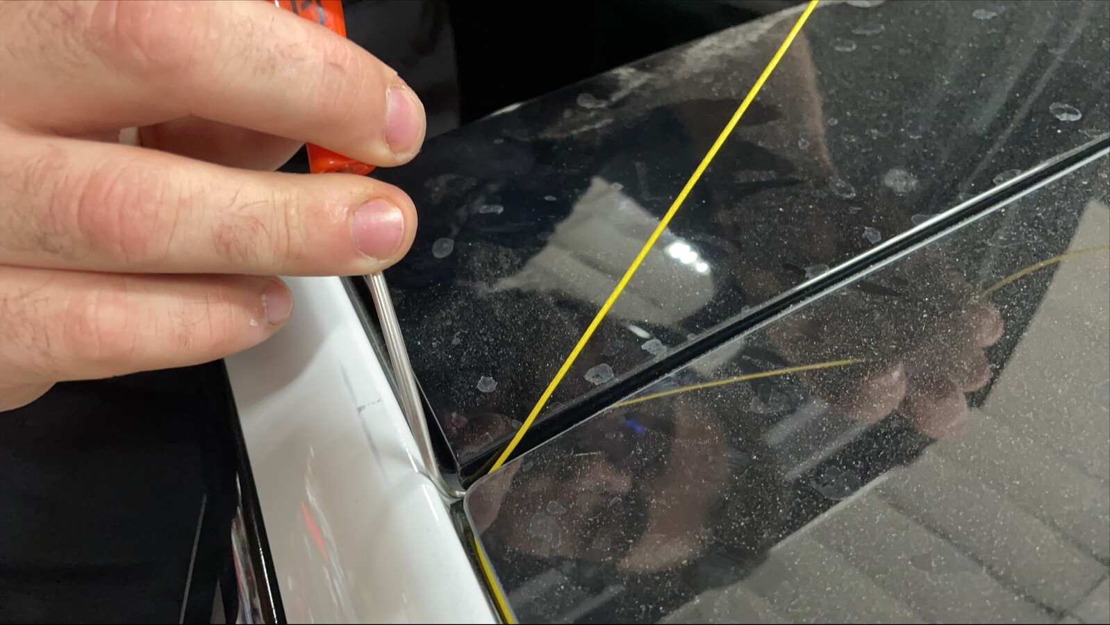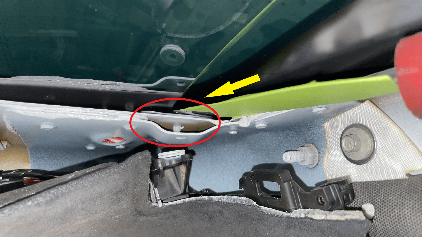 - Remove the tape from the exterior of both A-pillars.