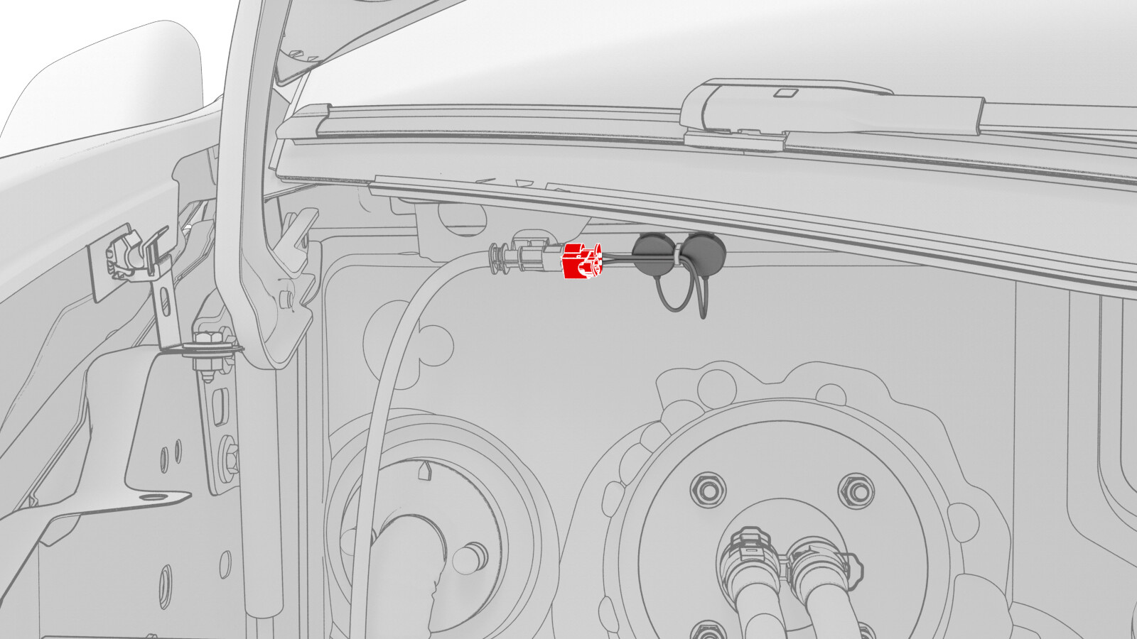 - Connect the windshield electrical harness to the humidity and temperature sensor connector.