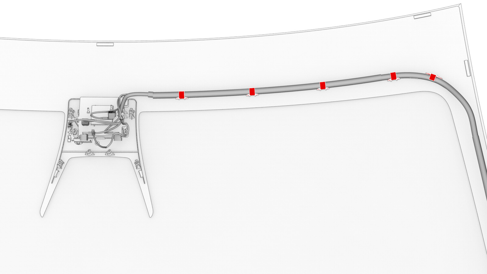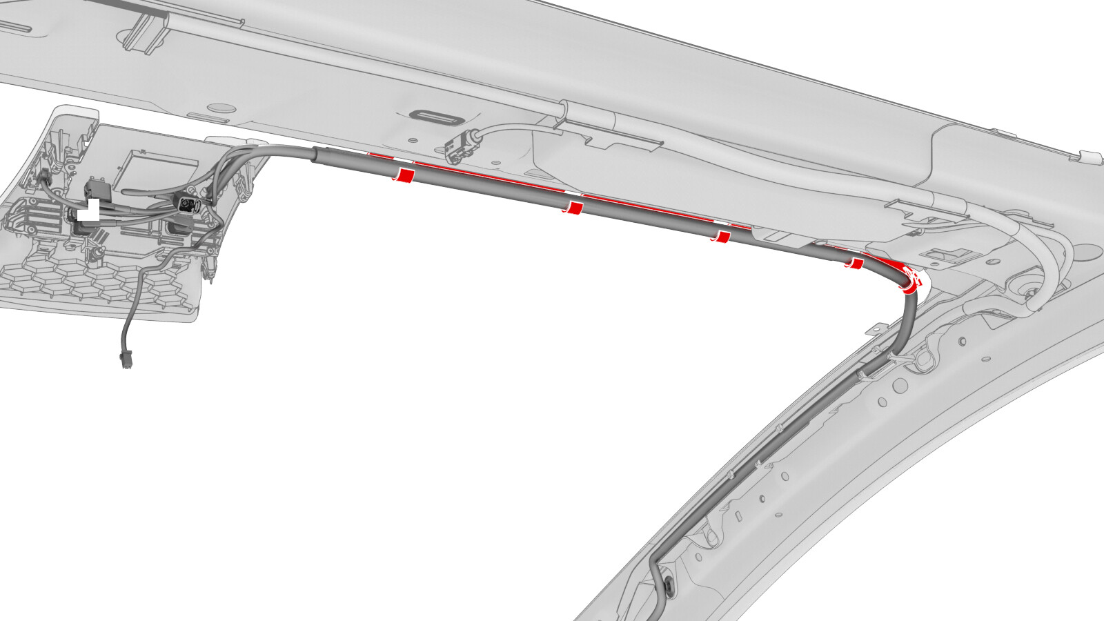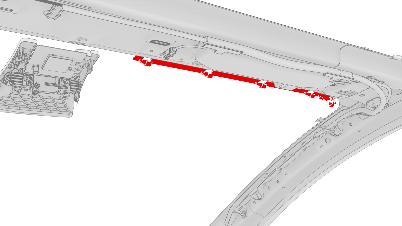 - Install the windshield harness onto the fastener track clips.