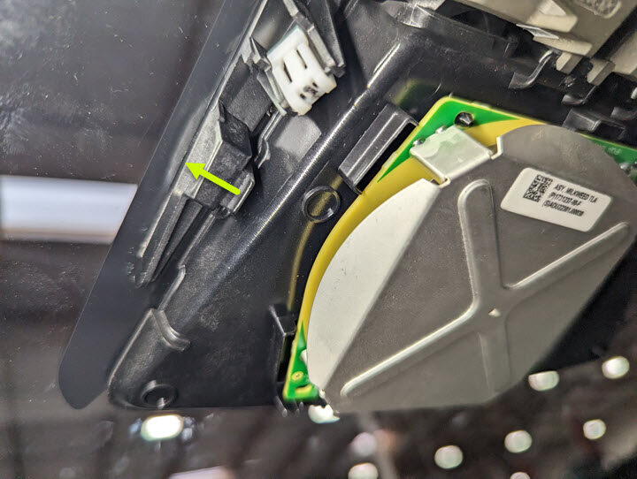 Fasten the clips that attach the upper quad camera cover to the windshield bracket.