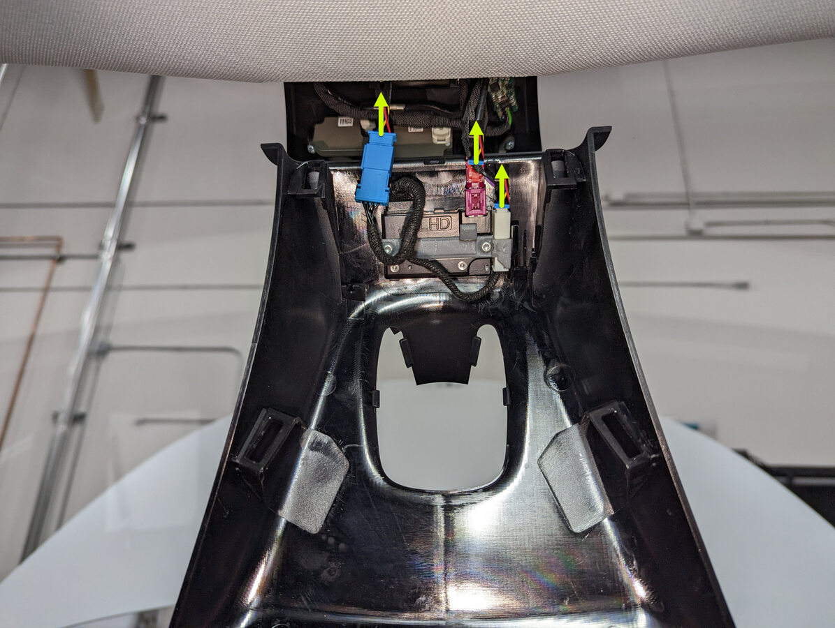 NoteMake sure that the connector for the rear view mirror passes through the opening in the upper quad camera cover.