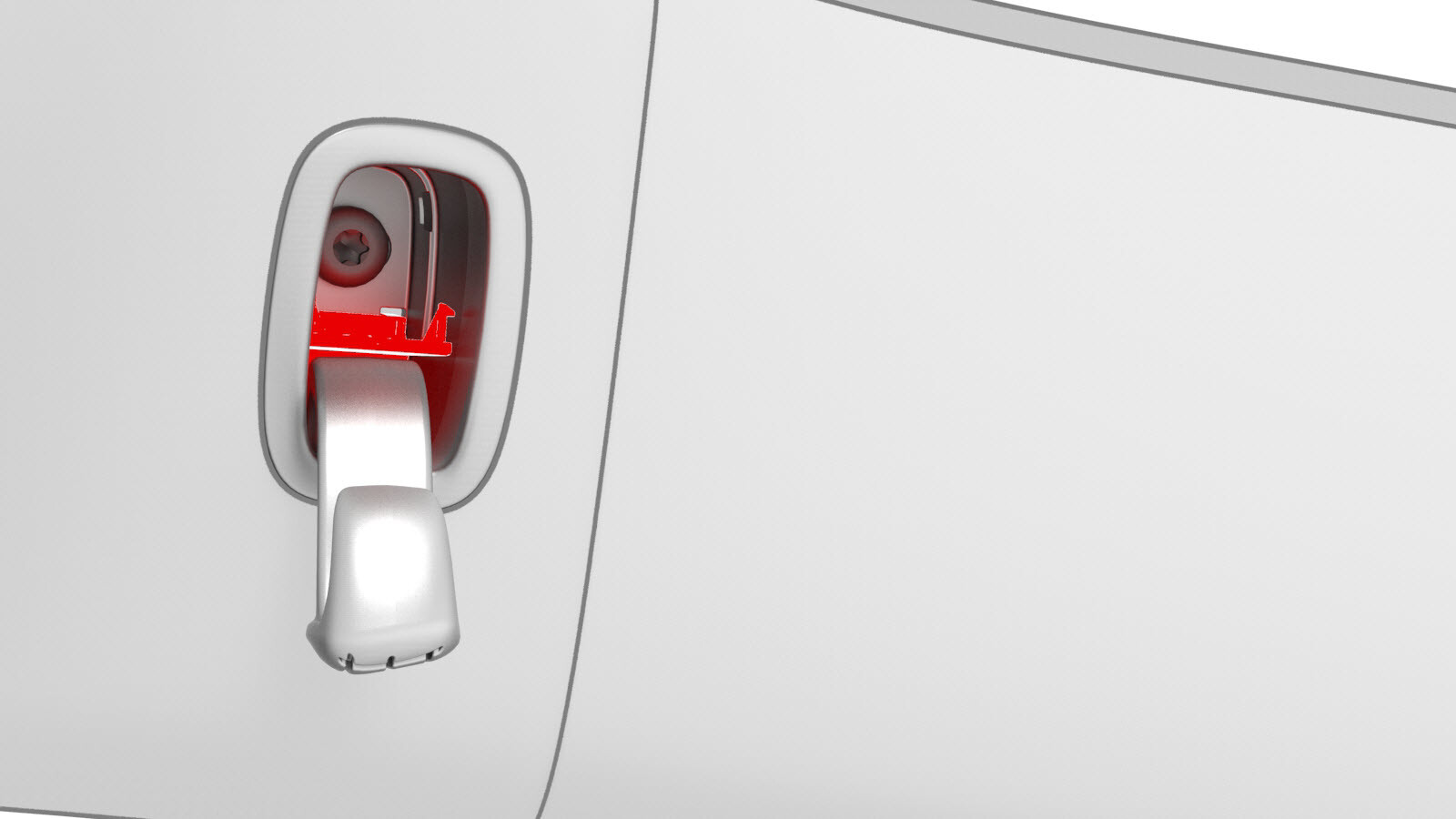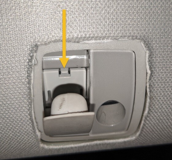 - Use a small flat head screwdriver to pry open the LH rear coat hook screw cover.