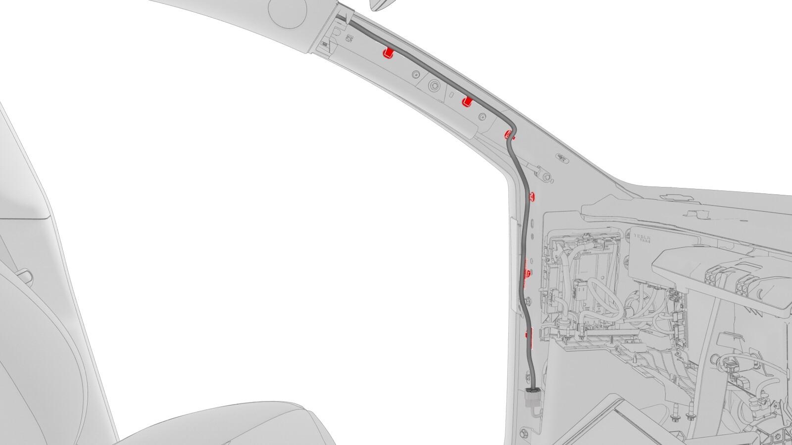 - Release the clips that attach the headliner electrical harness to the LH A-pillar.