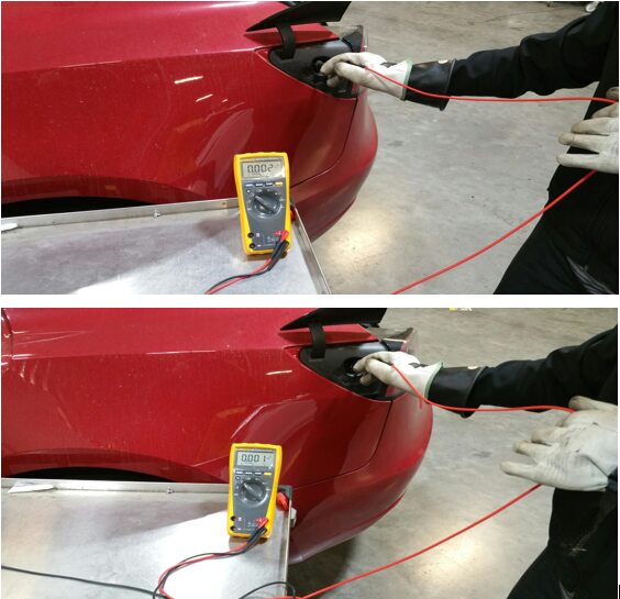 NoteCheck gloves for damage prior to use, Refer to service document TN-15-92-003 R1, for information on inspecting HV gloves. https://service.teslamotors.com/protected-doc/ServiceBulletins/External/TN/TN-15-92-003_High_Voltage_Awareness_Care_Points_R4.pdf
