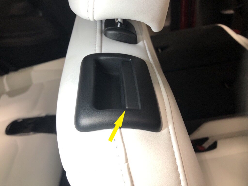 NoteHold 2nd row 60 seat LH shoulder switch, Slide seat all the way forward and tit up