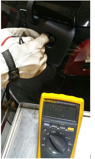 NoteMake sure to wear PPE (HV gloves, safety glasses) when working on high voltage components, Measure B+ to B-, B- to Ground, and B+ to Ground (use rear left door striker as a ground for the test), If voltage is greater than 10V, Pack contactors are not open or welded, Stop work and reach out to Service Engineering