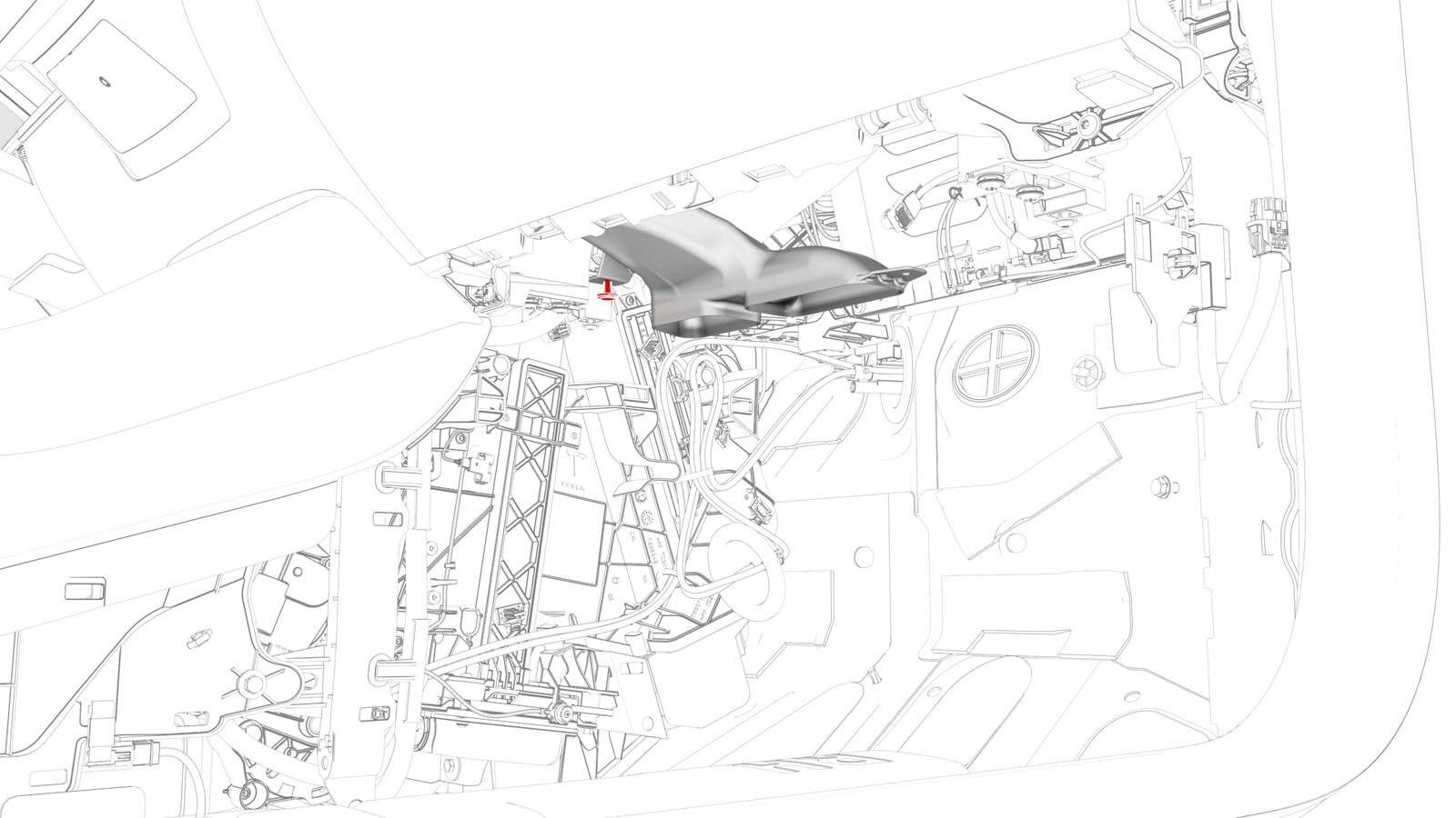 - Use a trim tool to release the push clip that attaches the RH footwell duct to the HVAC module, and then remove the RH footwell duct from the vehicle.