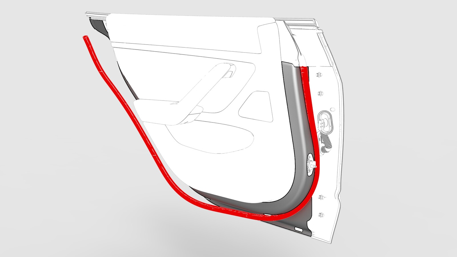 - Use a seam roller to attach the seal to the rear door.
