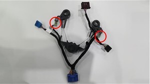 - Install the electrical harness into the steering wheel, and then connect the electrical harness to the lower connector.