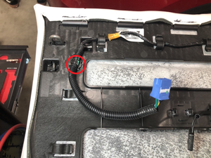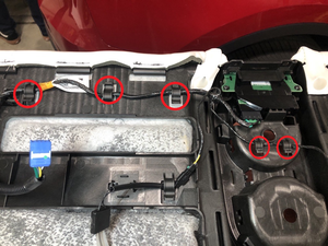- Install the 3rd row seat cushion harness into the hold tabs.