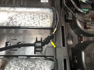 - Release the 3rd row seat cushion harness from the hold tabs, and then remove the harness from the vehicle.