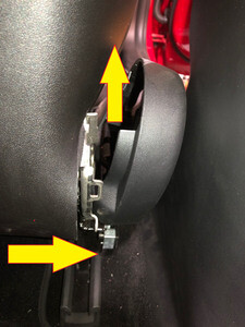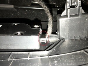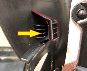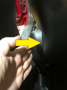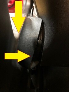 NotePull the lower section of trim away from the retaining tab to release, then pull the trim straight up off of the upper retaining tab