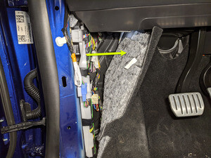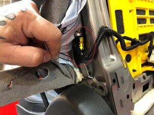 - Pull LH front cabin carpet away from A-pillar to access LH front seat connector