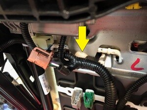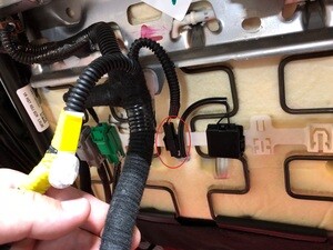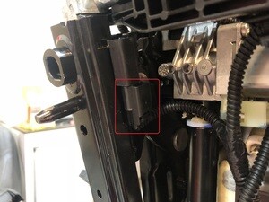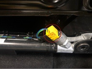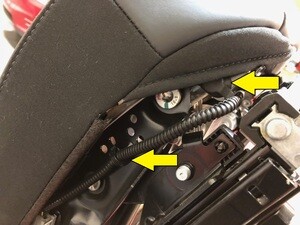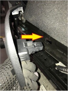 Install the clip securing the harness to the under side of the seat, next to the seat heater connectors