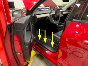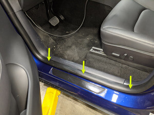 - Reseat LH front door seal along lower A-pillar trim