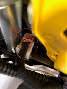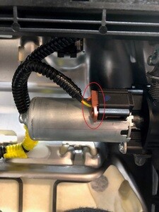 Remove the harness retaining clip under the tilt motor