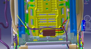 - Pull LH front seat harness from under LH front cabin carpet