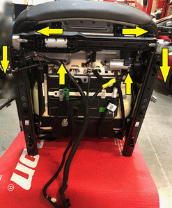 Remove the lower flap covering the outboard corner of the seat back frame