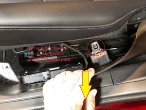 Remove clip securing the harness to the under side of the seat, next to the seat heater connectors