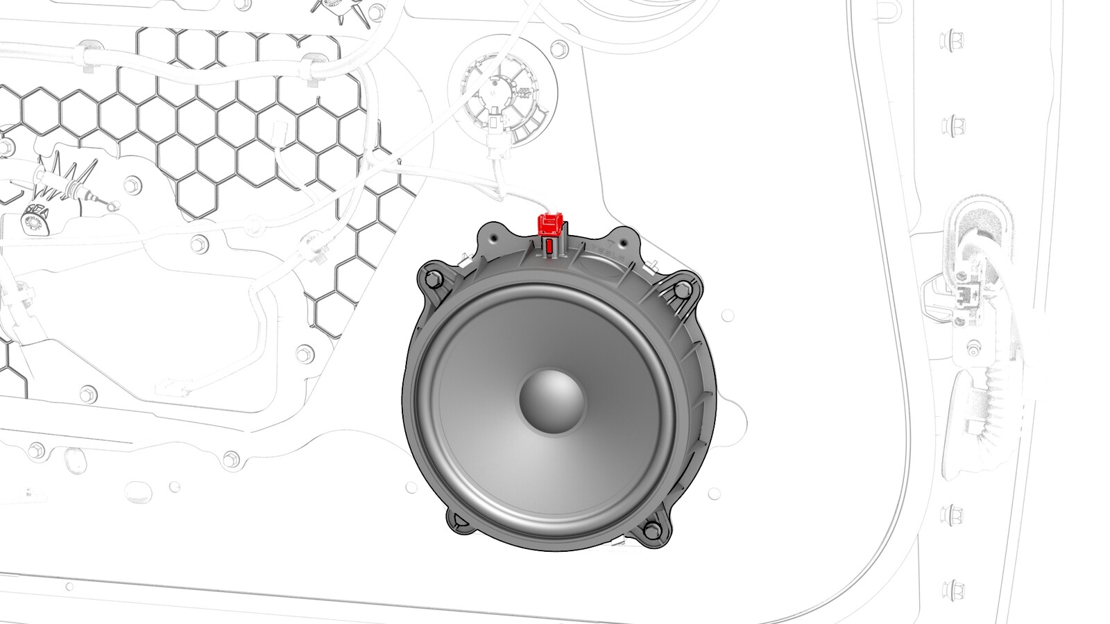 - Disconnect the electrical connector from the front door speaker.